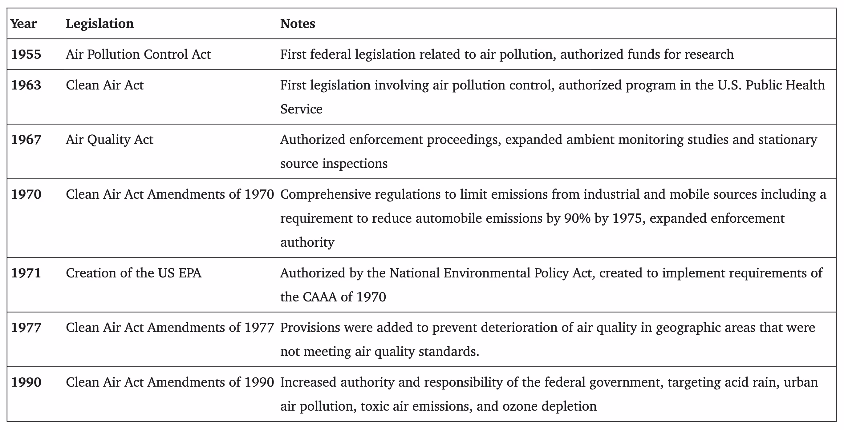 As legislation went into effect to curtail emissions, governments would usually rely on regulatory-grade air quality monitors to provide standardized air pollution detection. In the United States, the Clean Air Act of 1970 was instrumental. It allowed the Environmental Protection Agency (EPA) to put in place National Ambient Air Quality Standards (NAAQS).