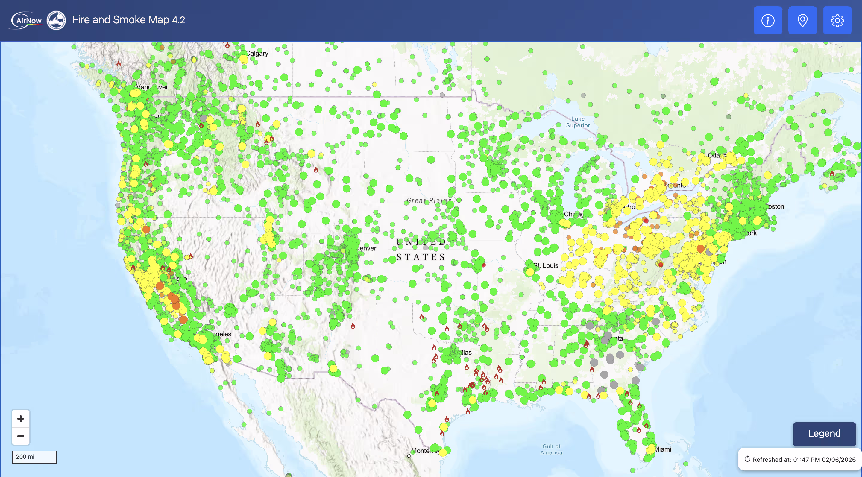 Low-cost air quality sensors have adopted features such as internet connectivity, which enables real-time air pollution data to be visualized, mapped, and downloaded at a large scale, while calibration techniques have also improved. Real-time data collection has enabled air quality sensors to be useful in rapidly changing environments, such as wildfire outbreaks.
