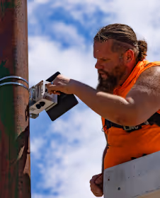 Compact, lightweight, and pole-mountable: Deploy hundreds or thousands of outdoor air quality sensors on streetlights, school buildings, community centers, or industrial fences. No trenching, power access, or permitting required.